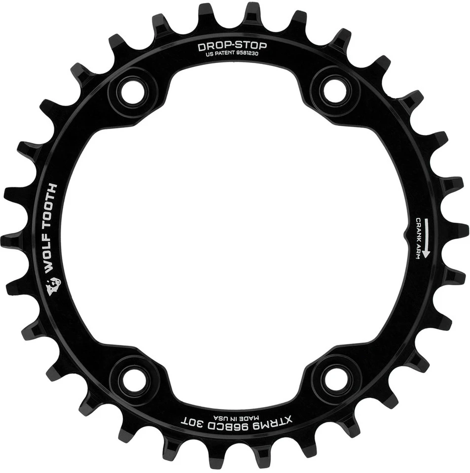 Spezifikationen:Einsatzbereich:Cross Country, All Mountain, EnduroBefestigung:96 mm Lochkreis, 4-Arm asymmetrischZähne:30 Z, 32 Z, 34 Z, 36 ZSchaltstufen:1×9-fach, 1×10-fach, ,1×11-fach, 1×12-fachTechnische Daten:Kettenlinie:49 mm (30-34 Z), 50 mm (36 Z)Material:Aluminium (7075-T6)Kompatibilität:Shimano XTR Race M9000 (1-fach, 2-fach)Shimano XTR Trail M9020 (1-fach, 2-fach)alle 10-fach, 11-fach, 12-fach Ketten außer Shimano 12-fachfür 9-fach Schaltung wird 10-fach Kette empfohlenShimano XTR Originalschrauben (ohne Abdeckungen) erforderlichFeatures:Wolf Tooth Wide-Narrow-DesignM7 GewindelöcherKettenlinie auch für die meisten Boost-Bikes optimalMade in the USA