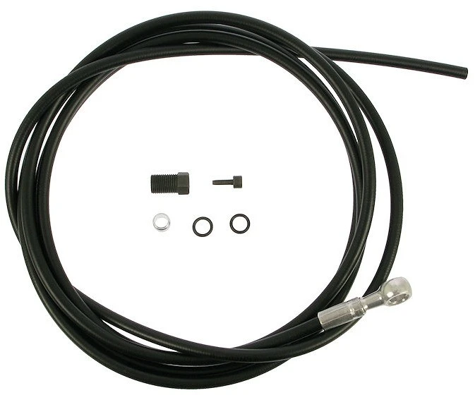 Das Bremsleitungsset von Avid besteht aus einer Hydraulik-Bremsleitung samt Anschlussmaterial und besitzt eine Länge von 2000 mm. Die Leitung ist mit verschiedenen Überzügen erhältlich und reicht zur Verwendung an einer Bremse (Vorder- oder Hinterrad).