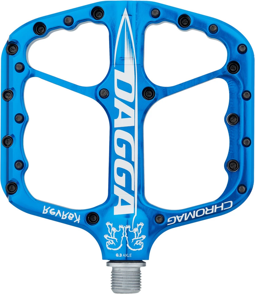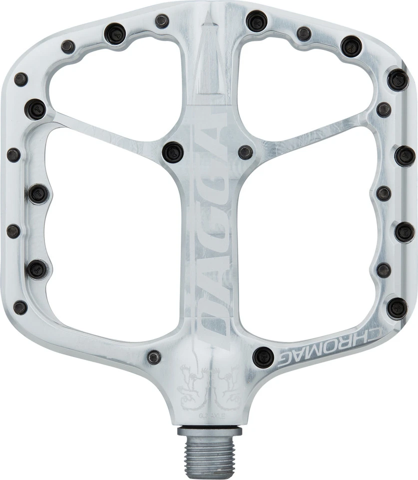 Die Dagga Plattformpedale besitzen die größte Plattform und breiteste Trittfläche im Chromag-Sortiment und bieten Dir somit viel Platz, um mit Hilfe der 24 höhenverstellbaren Pins sicheren Halt für Deine Füße zu finden. Die Pedaldicke beträgt in der Mitte 14,3 mm. Dagga kommt mit abgedichteten Lagern (außen) und einer Buchse (innen), die sich um eine robuste Chromoly Achse schmiegen.