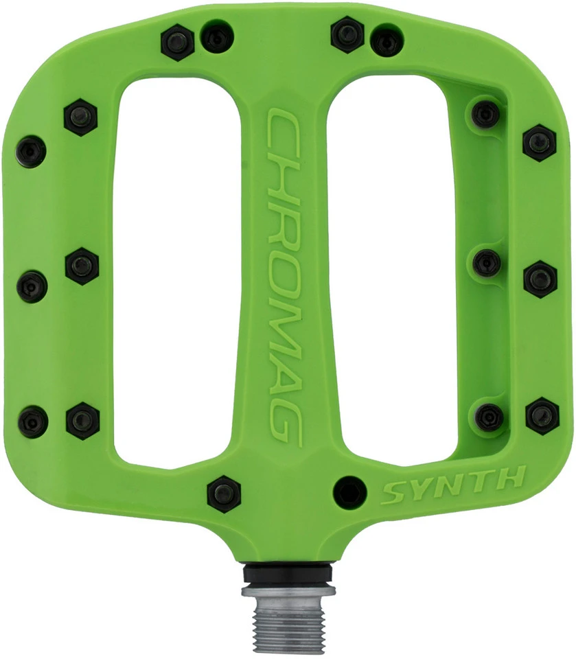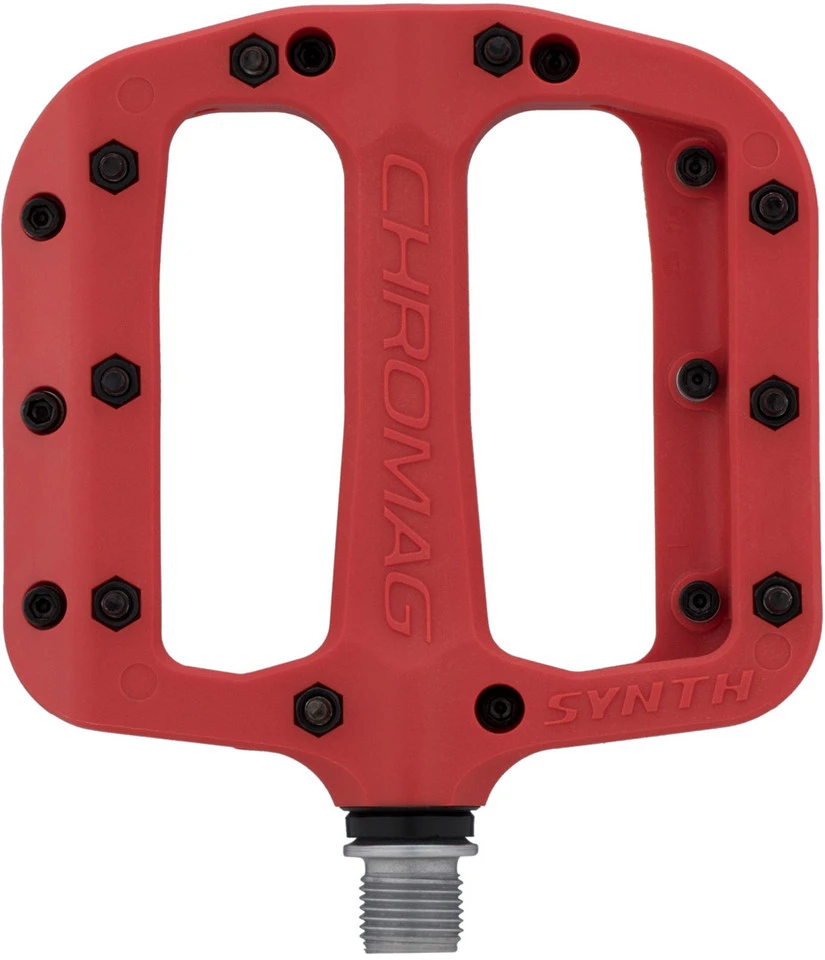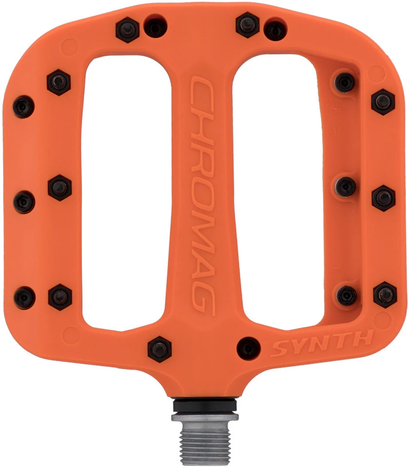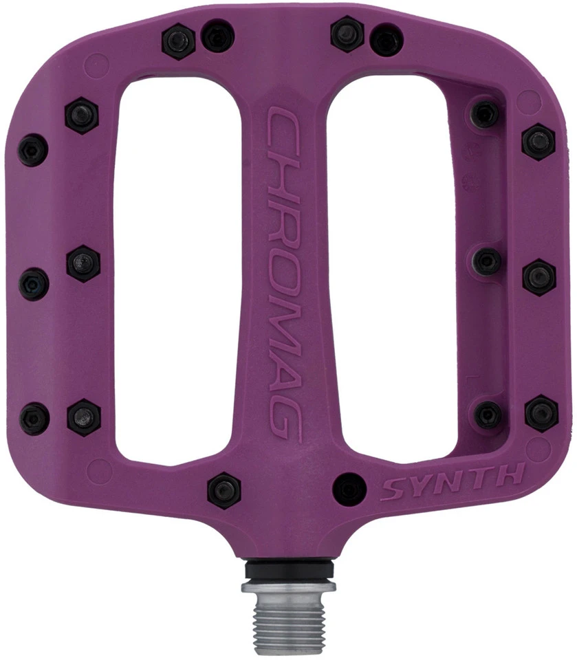 Spezifikationen:Einsatzbereich:Trail, Enduro, FreerideAusführung:PlattformpedaleTechnische Daten:Material Pedalkörper:Polycarbonat, NylonMaterial Achse:Stahl (CrMo)Maße [L x B]:110 x 105 mmAnzahl Pins:24Features:große Plattform, konkaves Designgehärtete Stahl-Pins (max. 12 pro Seite), austauschbar, höhenverstellbarAchse hitzebehandelt6 mm Innensechskant zur Montage an der Kurbel erforderlichHerstellernummern:black:183-001-01red:183-001-02blue:183-001-03green:183-001-04orange:183-001-05purple:183-001-06Lieferumfang:1 Paar Plattformpedale Chromag Synth