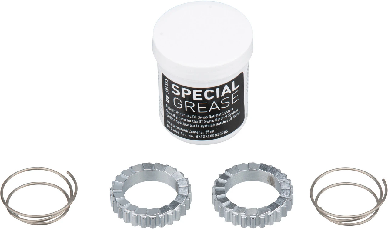 Lieferumfang:2 x Zahnscheibe DT Swiss2 x Feder DT Swiss1 x Fett DT Swiss