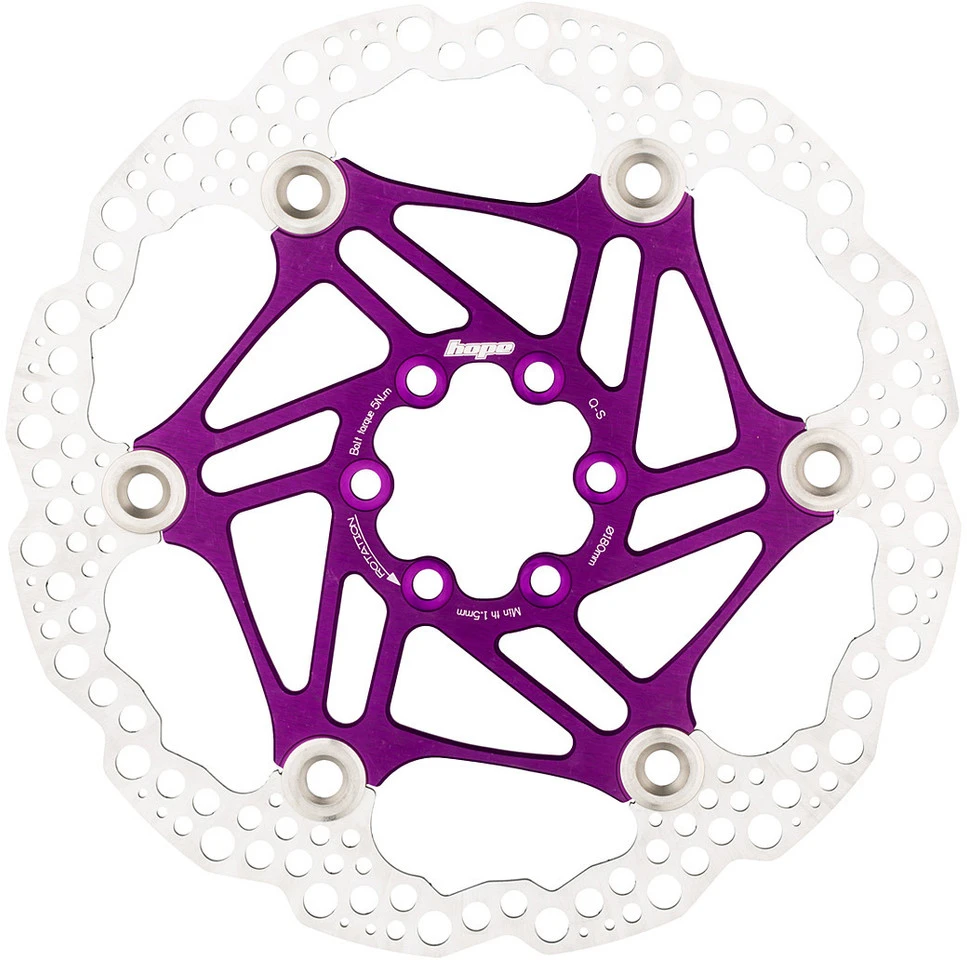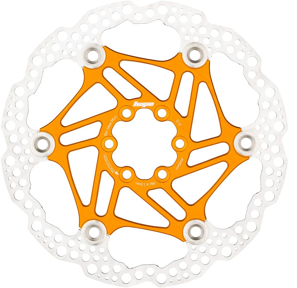Technische Daten:Montage:6-LochDurchmesser:140 mm, 160 mm, 180 mm, 183 mm, 200 mm, 203 mm, 225 mmBauart:2-teilig, schwimmend gelagertMaterial Disc:EdelstahlMaterial Spider:AluminiumMaterial Schrauben:StahlFreigaben:Bremsenkompatibilität:Hope Scheibenbremsen außer V2, dank breiterer Bremsoberfläche auch passend für Bremsen anderer Hersteller*