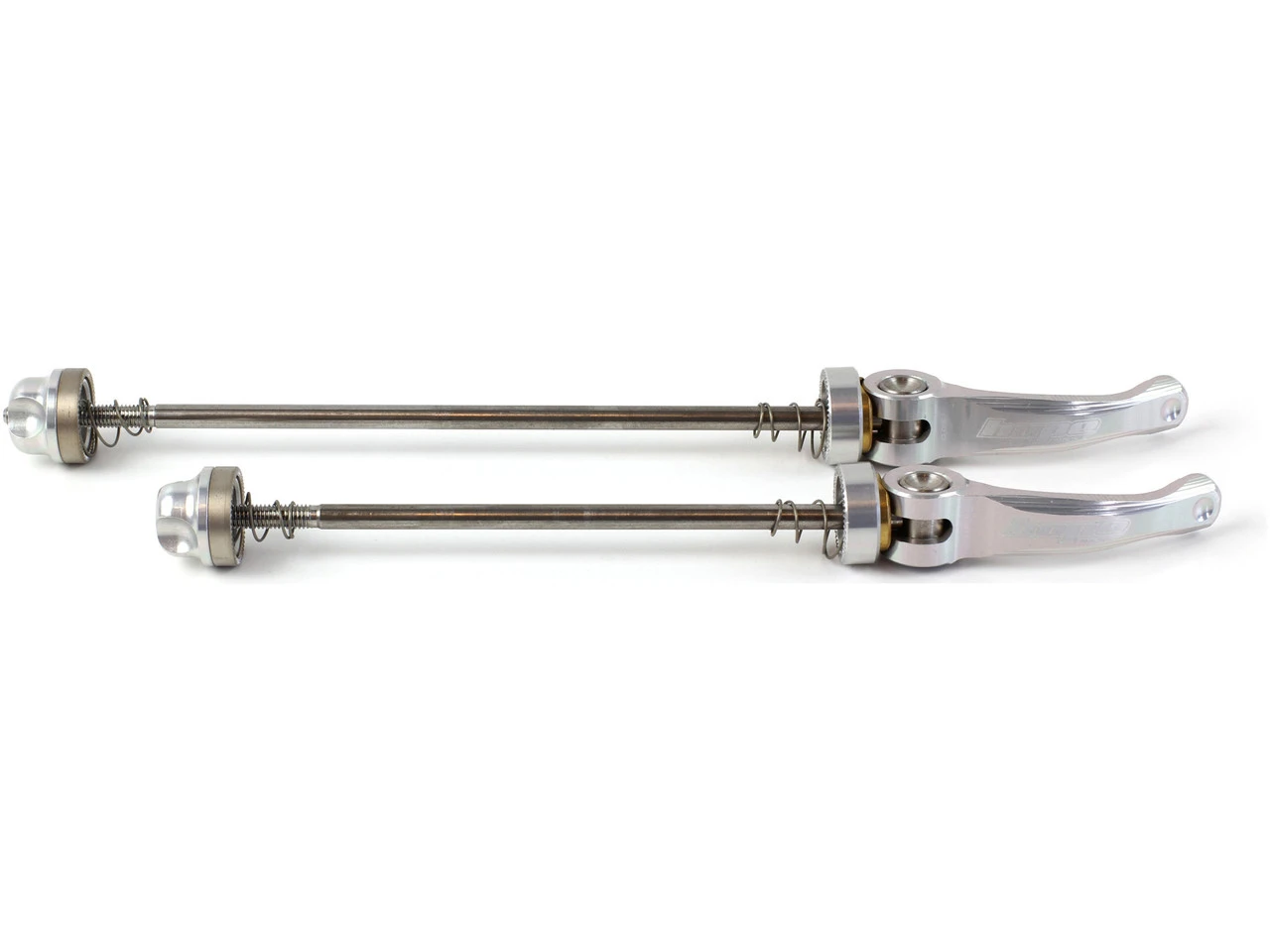 Schnellspanner mit einer Achse aus Edelstahl und einem Hebel aus Aluminium.