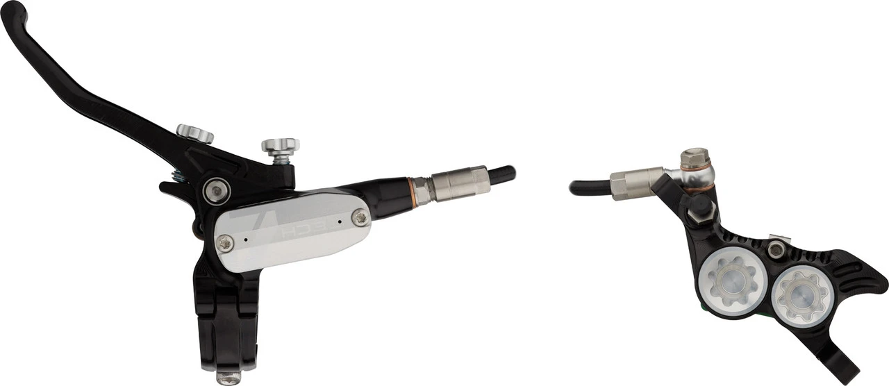 Die Tech 4 V4 Scheibenbremse mit Kunststoffleitung von Hope im v+h Set – ein Kraftpaket für Downhill-MTBs