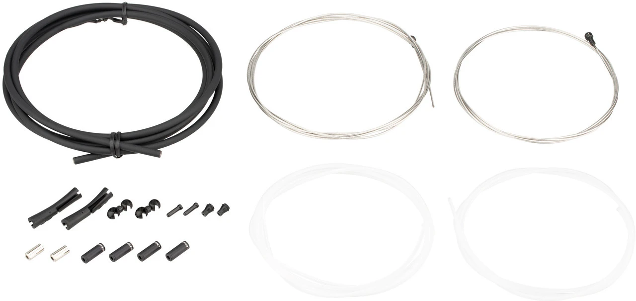 1 x Bremszug Jagwire STS-EL Elite 1350 mm (VR)1 x Bremszug Jagwire STS-EL Elite 2000 mm (HR)1 x Außenhülle Jagwire CSX 2200 mm1 x Liner Jagwire Slick-Lube 1275 mm1 x Liner Jagwire Slick-Lube 1925 mm2 x Endkappe Jagwire Grub Seal, gedichtet2 x Endkappe Jagwire Messing, offen4 x Endkappe Jagwire Aluminium, offen2 x Endtülle Jagwire2 x Rahmenschützer Jagwire 5G Tube Tops2 x Rotationshaken Jagwire