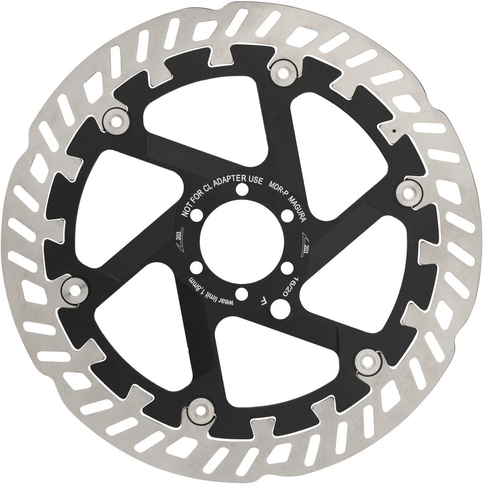 Die MDR-P 6-Loch Bremsscheibe von Magura mit zweiteiliger Bauart bewirkt konstante Bremsleistung, auch unter dauerhaft hoher Belastung. Dies gelingt dank der patentierten Dovetail Interlink Technologie, einer speziellen Verzahnung des Außen- und Innenrings. Diese ermöglicht bei Wärmeausdehnung des Außenrings eine zusätzliche Abstützung am Innenring. So wird das Drehmoment nicht ausschließlich über die Nieten, sondern über die gesamte Fläche übertragen, woraus sich eine erhöhte Steifigkeit und direkte Wärmeableitung bei Dauerbelastung ergibt, wie sie im Gravity-Einsatz vorkommt. Die Variante mit 220 mm Durchmesser schafft rund 10 % mehr Bremskraft als ein 203 mm-Modell und 20 % mehr als ein 180 mm-Modell. Die für den Belag kritischen Temperaturen werden deutlich später erreicht und die höhere Masse der Bremsscheibe verringert die Gefahr von Brems-Fading und reduziert den Belagverschleiß um 15 %. Die Bremsscheibe ist außerdem optimiert für den E-Bike-Einsatz.