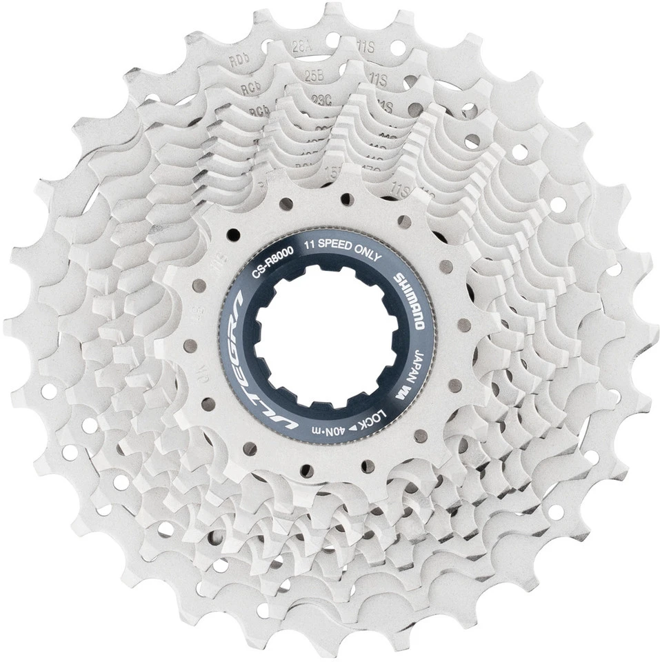 Abstufung:14-15-16-17-18-19-20-21-23-25-28 ZHerstellernummer:I-CSR800011428Lieferumfang:1 x Kassette Shimano Ultegra CS-R80001 x Abschlussring Shimano Aluminium