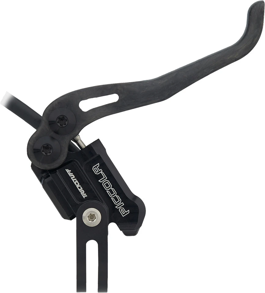 Spezifikationen:Serie:PiccolaEinsatzbereich:Cross Country, All Mountain, EnduroBremsentyp:hydraulisch, 2-KolbenBremsmedium:Mineralöl (Bionol)Leitung:Kevlar-HochdruckleitungLeitungslänge VR/HR:900 mm / 1700 mmTechnische Daten Bremssattel:Montage Bremssattel:PostmountKolben:2Bremsbelag:POWER-A organischMaterial Bremssattel:AluminiumTechnische Daten Bremsgriff:Hebellänge:1-FingerEinstelloptionen:GriffweiteneinstellungMontage:Klemmschelle (geschlossen)Bauart:Flip-Flop (seitenunspezifisch)Material Bremshebel:CarbonMaterial Bremsgriffgehäuse:AluminiumFeatures:klar definierter Druckpunktperfekte ErgonomieVerwendung von CNC-gefrästem Aluminium 7075 T6Zweikolben-Bremssattel C22 mit automatischer BelagsnachstellungBelagsabstand zur Scheibe von 0,2 mm für schleiffreie Bremsenhohe Hitzefestigkeit durch polierte EdelstahlkolbenFading-stabile, kräftige und geräuscharme Trickstuff POWER-A-Belägeultraleichte Hochdruck-Kevlar-Leitung (Berstdruck 630 bar)Verwendung von temperaturstabilem, organischem Bionoleinfache, schnelle und saubere Entlüftung4-fach kugelgelagerter Carbon-Hebelsehr großer Hebelweiten-Einstellbereichüberall erhältliche Bremsbelagsform (wie Avid Elixir)optional sind verschiedene Schalthebel-Interfaces für SRAM und Shimano (I-Spec 1 und 2) erhältlichMade in Germany