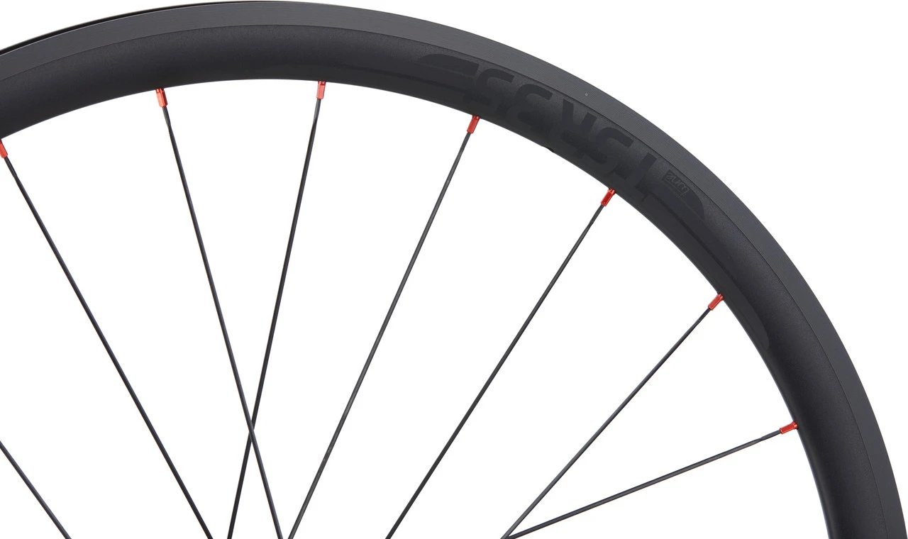 Spezifikationen:Einsatzbereich:RoadLaufradgröße:28″Reifentyp:Draht-/FaltreifenAnzahl Speichen:20 (VR), 24 (HR)Bremssystem:FelgenbremseTubeless-System:Tubeless ReadyTechnische Daten Felge:Typ:TSR35Dimension (ETRTO):19,9-622Felgenbreite innen:19,9 mmFelgenbreite außen:24 mmFelgenhöhe:35 mmERD:568 mmVentilloch (-durchmesser):SV (6,5 mm)Material Felge:AluminiumTechnische Daten VR-Nabe:Typ:MigEinbaubreite:9 x 100 mm SchnellspannerLagerung:Standard-StahlkugellagerMaterial Nabenkörper:AluminiumTechnische Daten HR-Nabe:Typ:MagEinbaubreite:10 x 130 mm SchnellspannerLagerung:Standard-StahlkugellagerMaterial Nabenkörper:AluminiumMaterial Freilaufkörper:AluminiumFreilaufsystem:Standard 3 Titanklinken / 27 RastpunkteTechnische Daten Einspeichung:Einspeichmuster VR:radialEinspeichmuster HR:2-fach gekreuztSpeichentyp/Bauart:Sapim CX-Ray / MesserspeicheMaterial Speichen:EdelstahlNippeltyp/Bauart:Sapim Polyax Secure Lock eloxiert / double squareNippelgröße:16 mmMaterial Nippel:AluminiumFreigaben:Gewichtsbeschränkung:100 kg (Fahrer), 110 kg (Gesamtgewicht)Luftdruck max.:7 bar (25 mm Reifenbreite), 6,5 bar (28 mm Reifenbreite), 5 bar (33 mm Reifenbreite), 3,5 bar (45 mm Reifenbreite)empfohlene Reifenbreite:25 – 45 mmFeatures:Endkappen aus Aluminiumschwarz verchromte Aero-Speichenempfohlene Bremsbeläge Swissstop BXPempfohlene Ventillänge 60 mmempfohlene Tubelessband-Breite 22 mmAusführungen:28″ HR 12×142 SRAM XDR: